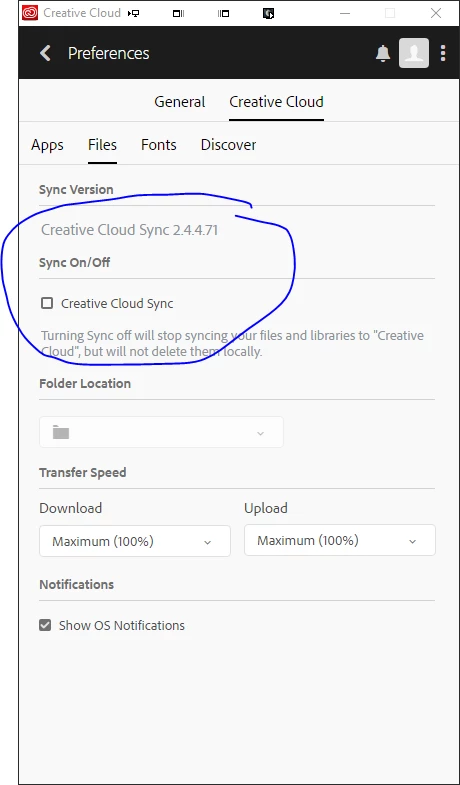So, Photoshop CC 2018 threw an error upon launch about an extension that appeared to be unsigned. This was new as I'd been using the extension for some time. However, I deleted the extension and, not long after, I noticed my files and fonts weren't showing in CC. All I got was a spinning circle. I also noticed that Under Creative Cloud Files Sync On/Off, the checkbox for Creative Cloud Sync was grayed out.