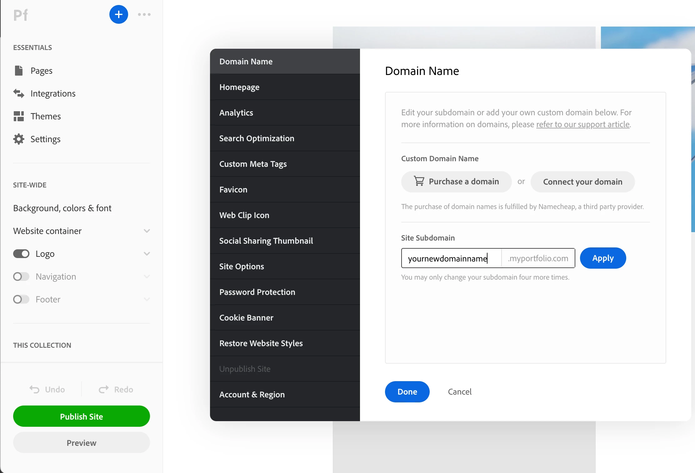 Change my email address in adobe portfolio
