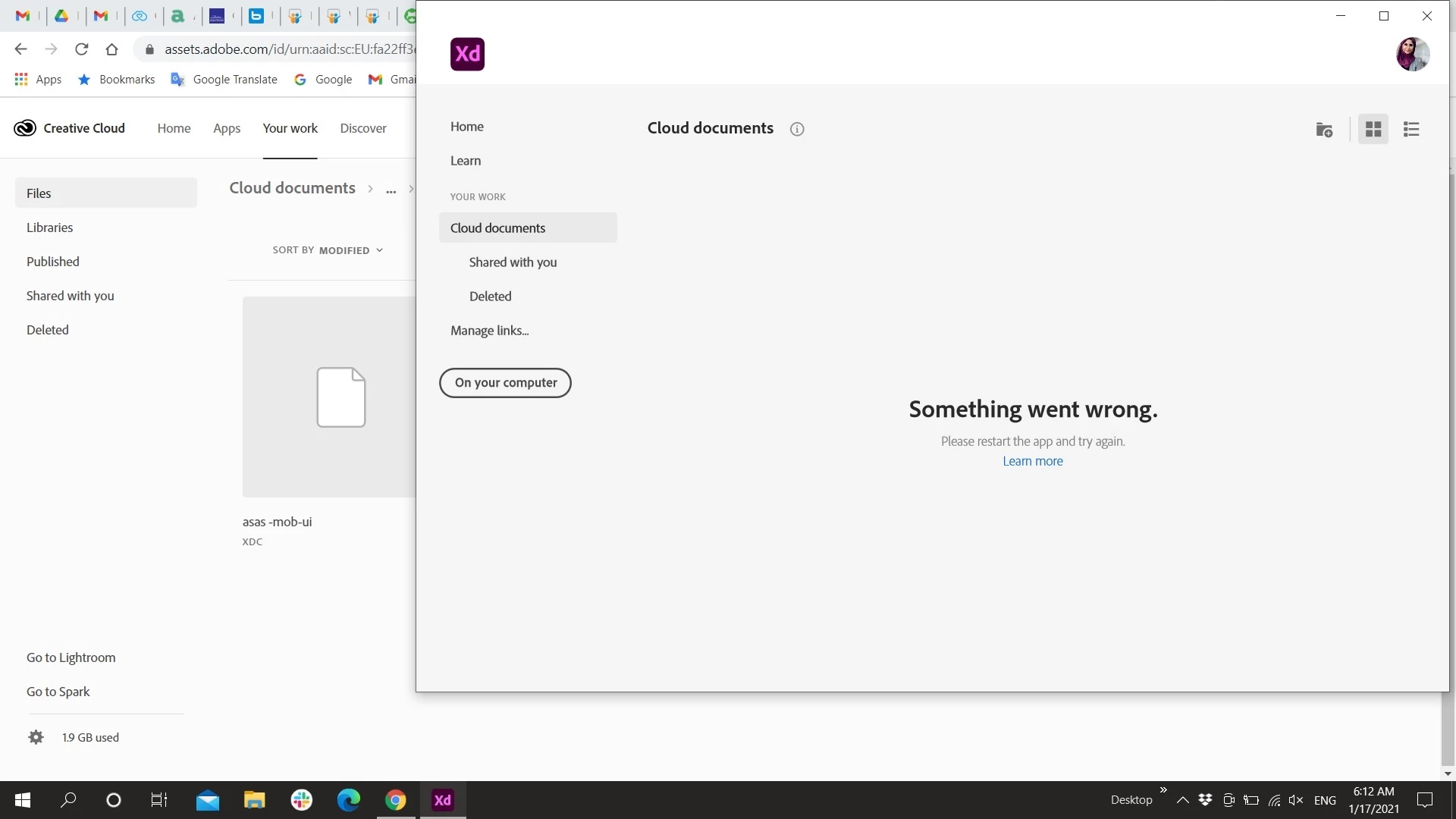 I tried to uninstall and reinstall the cloud and xd latest updates so many times and nothing happen to solve the issue