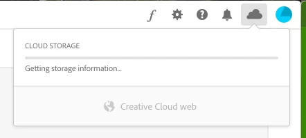 - In the desktop app, clicking the cloud icon in the toolbar shows an unmoving progress bar stuck on "Getting storage information." (see attached)