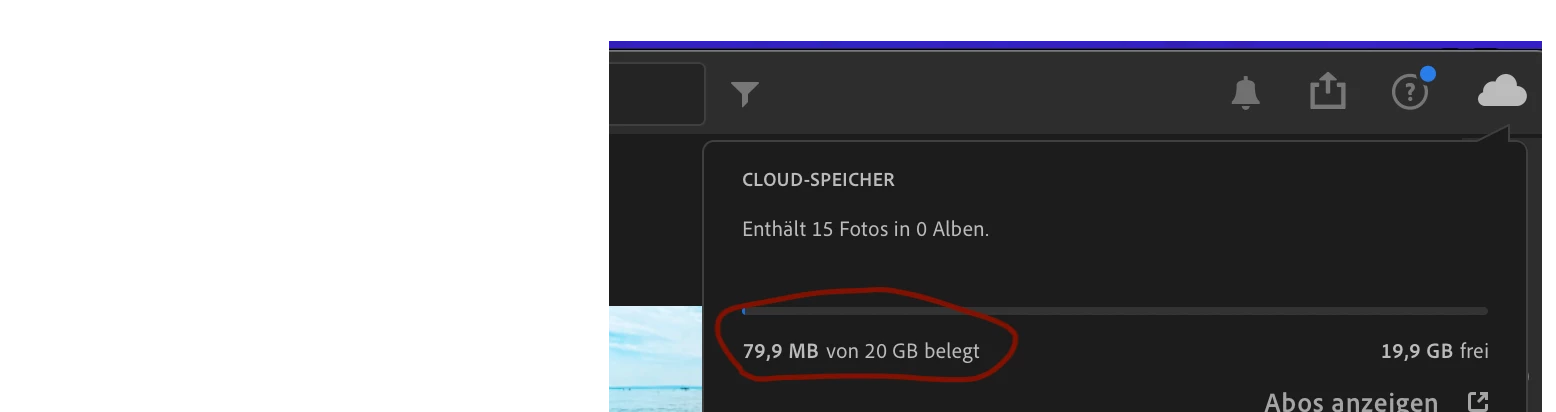 According to Lightroom, I have 70 MB used, which I can understand because I do have some pictures on my library. However, according to the Cloud website, I have already used 125 MB and I cannot find the other 55 MB worth of files.
