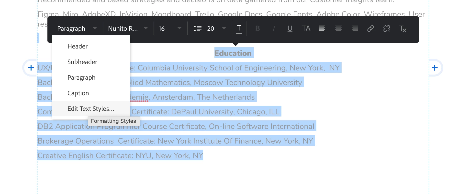 I am able to select the text I want to change and  and change the size and the font but nothing bappenes. changes do not occur. please see attached