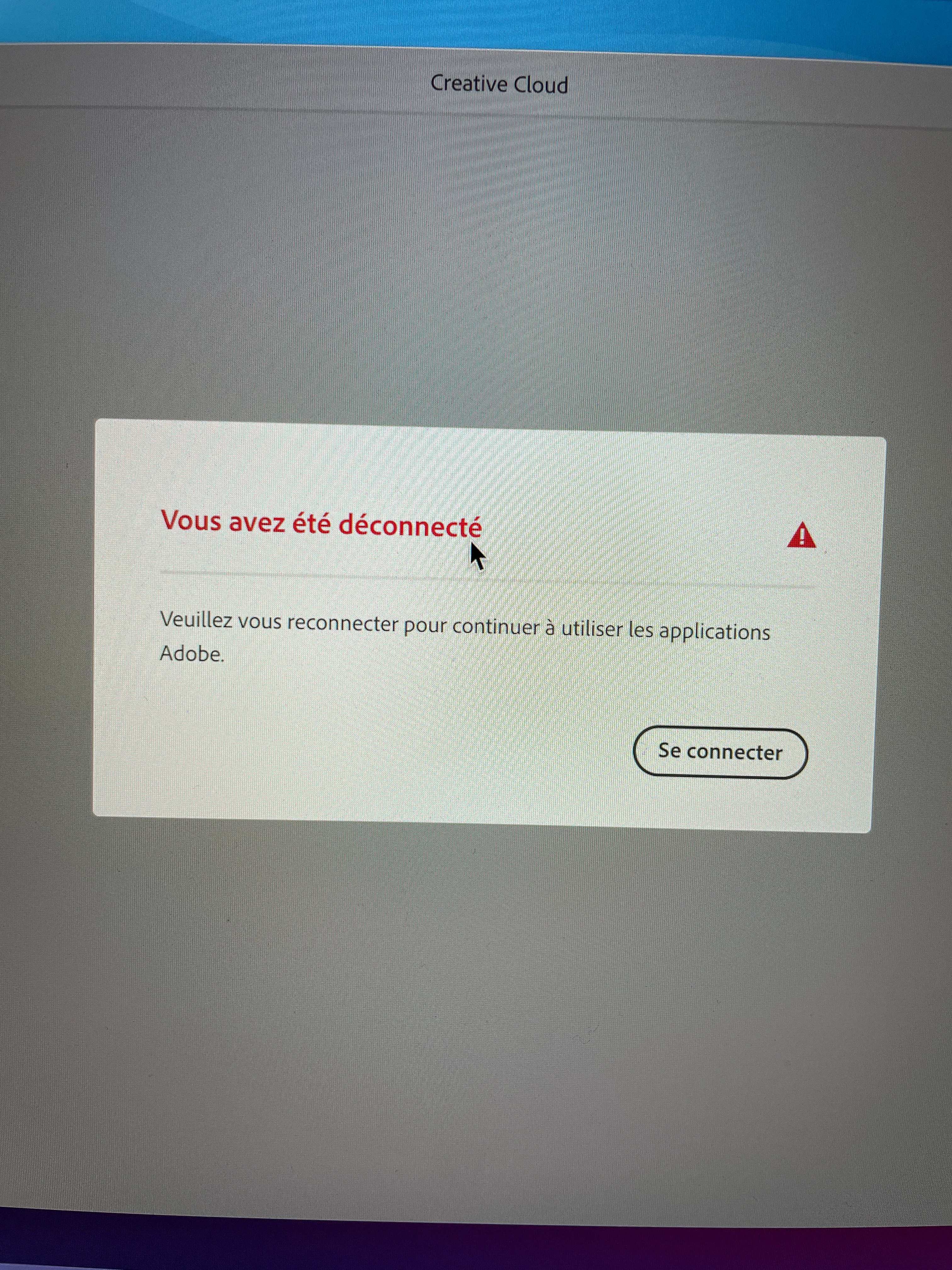 j'ai un soucis sur Creative Cloud, sur mon Macbook Air M1 2020, la première fois tous marchait super, et aujourd'hui (après 4 jours) je ne pouvais plus y rentré, cela me dis que c'est déconnecté que je dois me reconnecter, je clique sur "se connecter" et toujours la meme choses sa me redemande la même choses sans cesse.