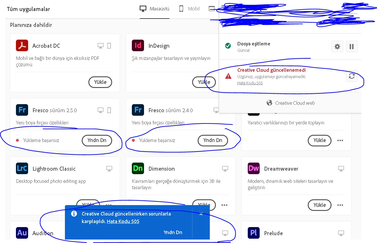 Ooğuz5FA0ParticipantForum|Forum|4 years agoMay 12, 2021Questioncreative cloudForum|Forum|4 years agoMay 12, 20211 reply417 viewscreative cloud güncellenemedi yazıyor.Bazı uygulamaları indirmiyor yeniden deneyin yazıyor.TurkishFile sync