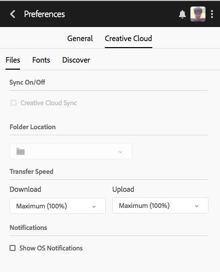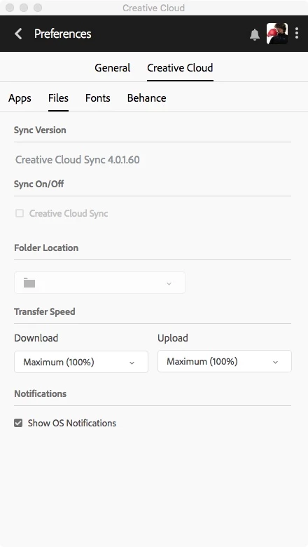 I am trying to turn on file sync in the Creative Cloud application, but the option is greyed out.