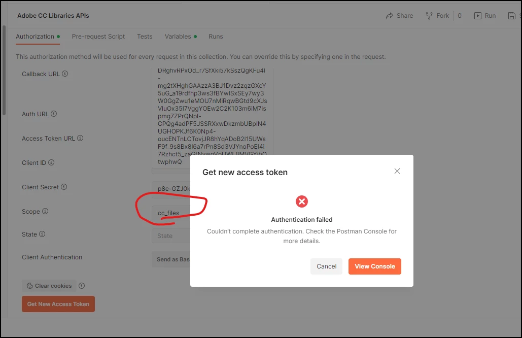 Creative Cloud Assets API issue