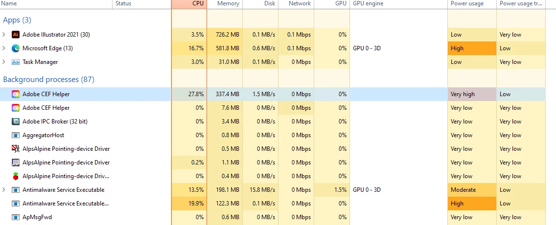 Adobe CC background processes, however, have rendered it unusable. It is not enough to disable Adobe startup applications. The GPU is forced to restart every few minutes, and the fans are constantly spinning. Creative Cloud apps are basically unusable when the background processes are enabled. Only if I go into task manager and quit each Adobe related process does the computer (and ironically Creative Cloud) become usable again.