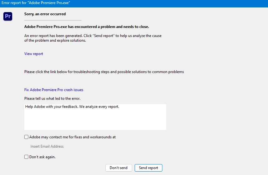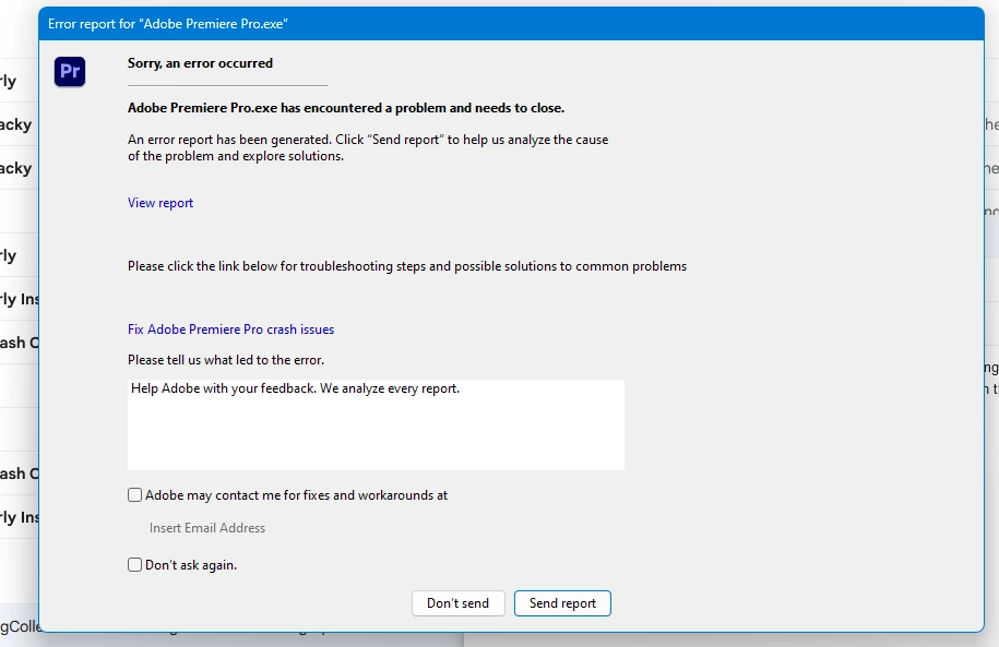 Creative Cloud crashes my premiere pro upon installation. Followed by an Error