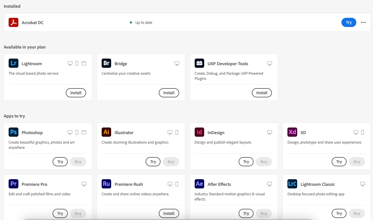 I have been having this issue for a week and I am now stuck and Adobe support doesn't seem to be able to help me. I had "personal" account on Adobe then I decided to make a "business" profile with the same email address. I have an active subscription on the business profile, but nothing on the personal one. Since last week, even if I log on CC Desktop app with my professional account, it says I have no subscription. I have had 5 chats so far with adobe and they did so many things on my mac without solving the issue. I then tryed to log in with my colleague account (she has personal and business profile too) selecting the business profile and even with her profile I have the same issue. I can't use any application it just gives me te option to "try" or "buy" the application I want to use (with my profile the trial has expired too so I can't use it anymore). Did anyone here have the same problem? how do I fix this?