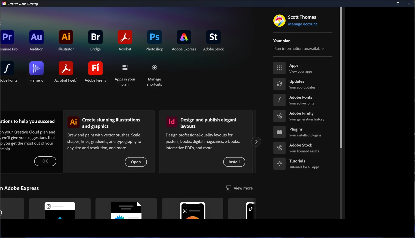 Creative Cloud Desktop – Black Bar on Right, UI Cut Off, Cannot Click Anything