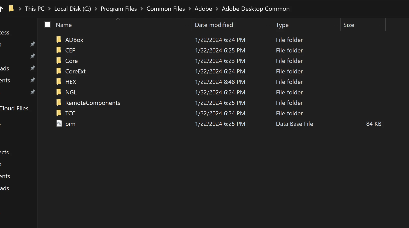 Within each of those folders, is thousands of Empty folders also called "Creative Cloud Files." Thousands is not an exaggeration. When I go to delete them from the folder within my normal Windows Explorer, it finds about 3,000 of them per folder. Meaning Creative Cloud Sync has created 16,000 empty folders. Deleting them does not work. It appears like they are being recycled, but it will error out and they stay put.