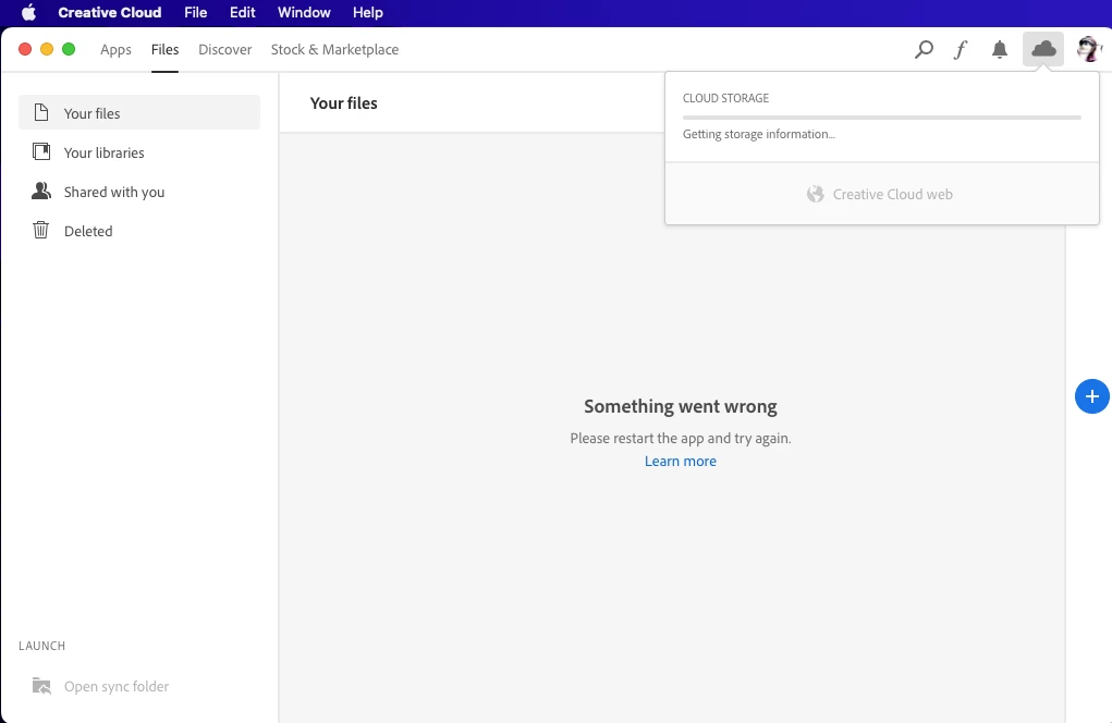 I recently bought a new Mac Mini (the new M1 chip Mac), got everything set up as far as Adobe CC. The apps work and update just fine. I created a folder in the "Creative Cloud Files" area in the Finder for Work In Progress. I did this on the new Mini. Placed files in the folder and it synced fine. I also use a Macbook Pro 15 (Late 2017) Intel laptop. I sometimes use that as well to work on files. The folder created on the Mini synced fine and was there in the Creative Cloud Files area on the laptop. I later created some new files on the laptop from files in that synced folder. Saved those files to that folder on the laptop. A few days later I needed them while working on the Mini. They were not there. I checked to see if the laptop had properly synced the files and they had. They did appear on the web but apparently the mini is only syncing files created on the mini. When I go to the CC desktop app on the mini I get an error that states "Something went wrong." When I check if that part is syncing it is grayed out and says "Gathering information" but remains locked in the same position (see attached screen shot below).