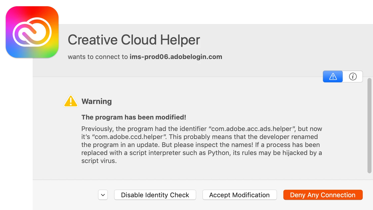 My LittleSnitch is telling me Creative Cloud Helper wants to connect to ims-prod06.adobelogin.com and that the program has been modified: