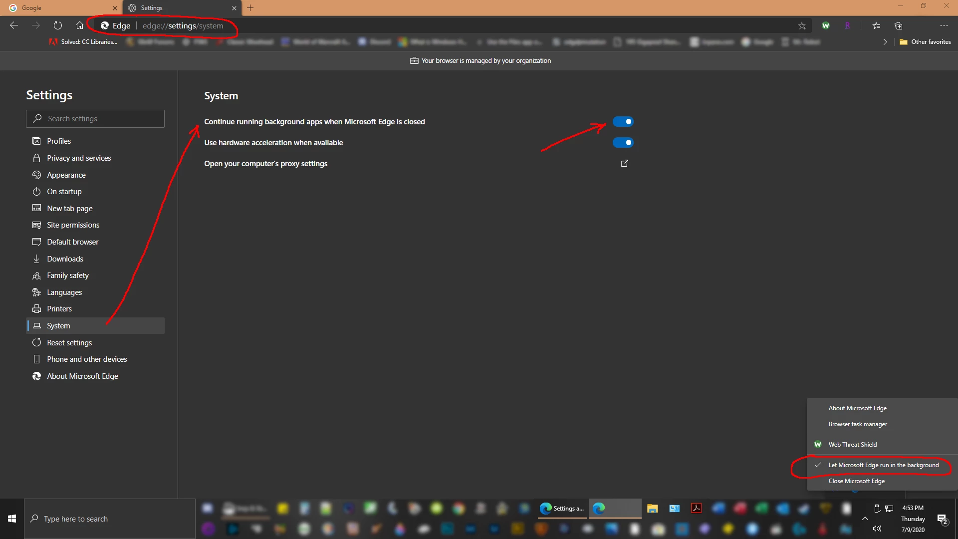 Then while hoovering in the lower right corner of the screen I noticed the check box was checked "Let Edge run in the background". Then it occured to me I recently updated to the new improved EDGE. I unchecked the box and closed ALL EDGE application. BAM! ... Creative Cloud installed flawlessly. By default I guess on install that box is checked. ALTERNATIVELY in the photo you can go to EDGE system settings as indicated and turn that switch off and on at will.