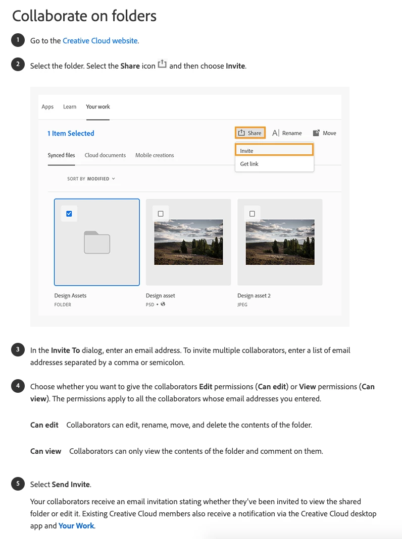 Creative Cloud is not allowing me to share Cloud Document Folders