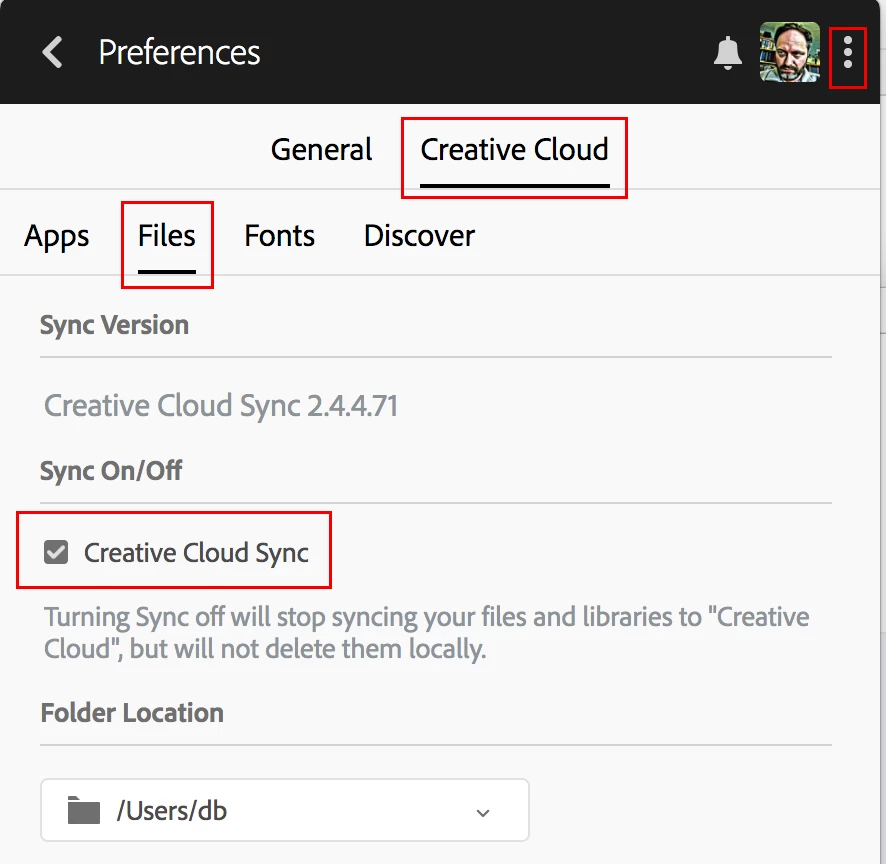My Creative Cloud shows red and "date modified" is a date two weeks ago but I work on it every day!
