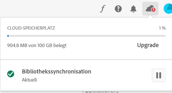 When I click it, it shows a cloud alert within the app, that nearly 1 % of my 100 GB cloud space is taken, and that I should upgrade.