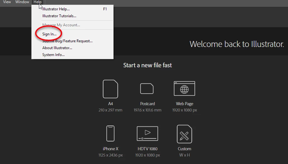 The funny thing is that when I open Illustrator or Photoshop, the program shows that I am logged in, because my picture is there, but when I click the Help menu, I get this: