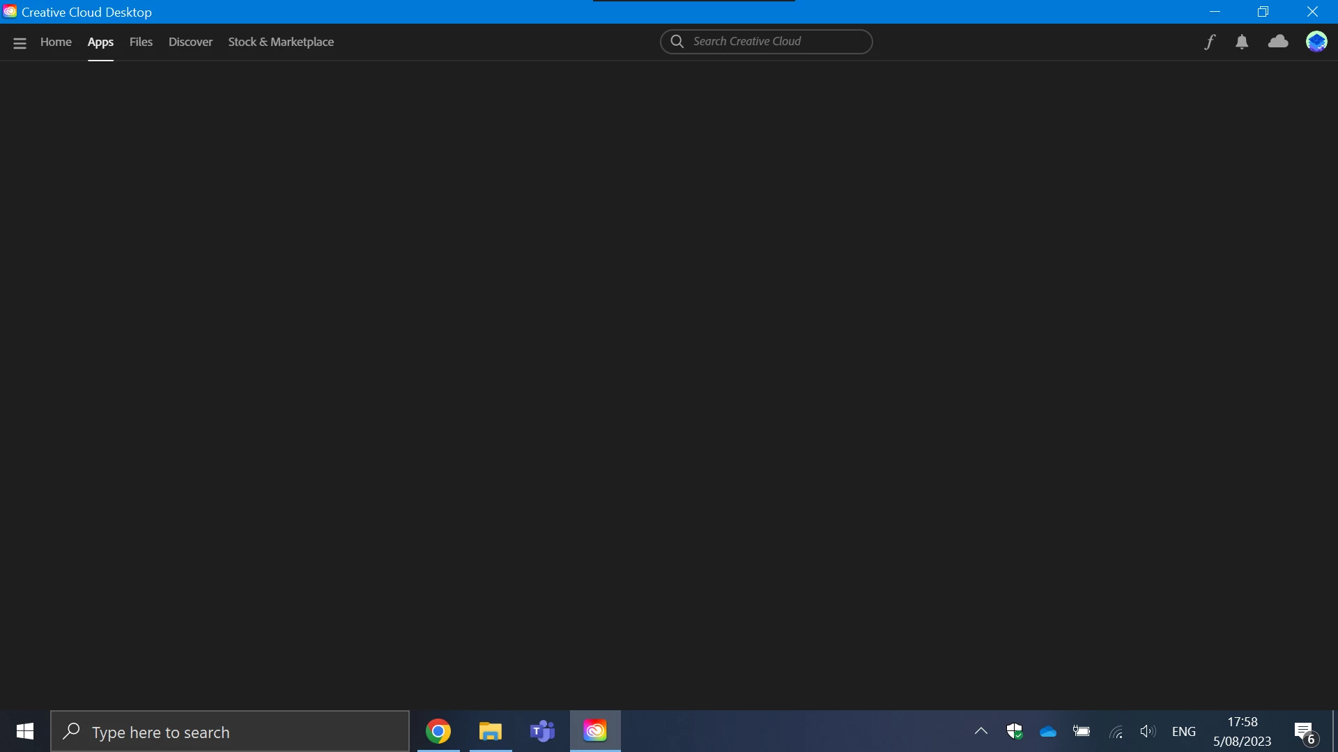 Creative Cloud never loads the apps section