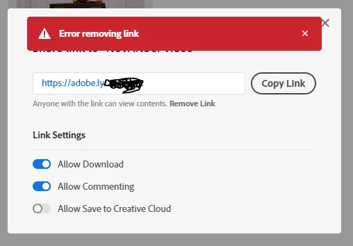 I created a shared link to the folder to share with the team, just as I've done many times before. However they can't view the files using the link. As you can see in the screenshot below, previews aren't appearing for the videos on the link, and when they are clicked on, we just get a blank white page with the Adobe header.