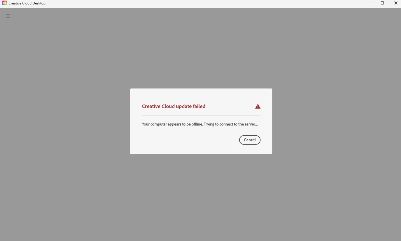 Adobe needs to start creative cloud. CC has stopped working. Popup reads there is an update available. Popup blocks entire creative cloud screen. Creattive cloud will not update because it falsley claims there is no internet connection. Here I am typing this on the same computer using the same wired internet which creatire cloud can't find. Unplugged modem, waited, plugged modeom back in. Shut down computer. Wiated. Started computer. Everything seems to indicate the internet is working 100% prefectly fine. So, Adobe needs to fix creative cloud. CC has failed. Every app except for creative cloud is working fine. To answer the always asked question - Windows 11 Pro. Every single thing on the computer, except for creative cloud, is up-to-date. The computer internet is hard wired, it is not wi-fi.