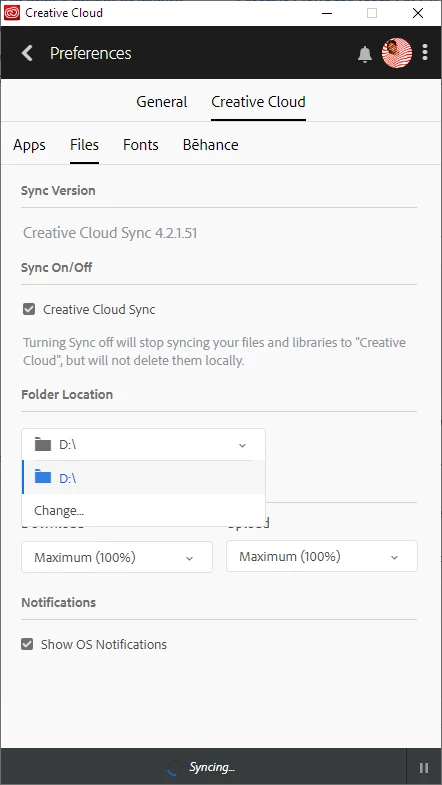 Creative Cloud stuck syncing after folder location change