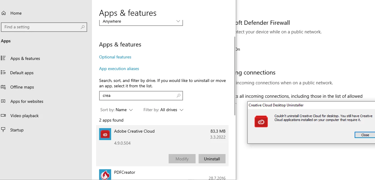 As a fix I could try to uninstall Creative cloud, but it wont allow me as I still have Photoshop installed.