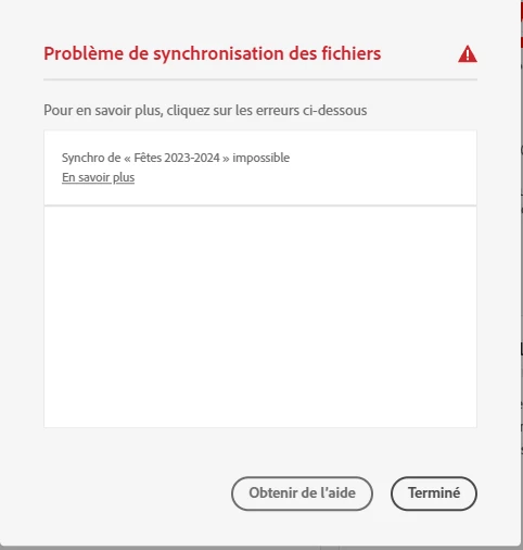 Creative Cloud - Synchronisation en erreur sur un dossier qui n'existe plus