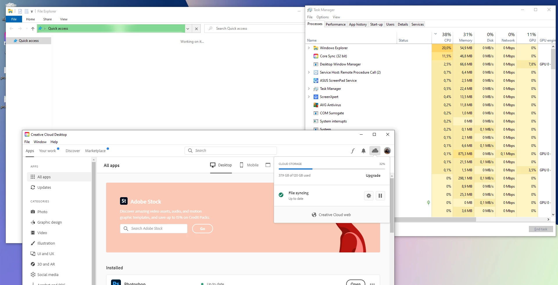 Creative Cloud syncronization 100% CPU is blocking File Explorer and the whole PC
