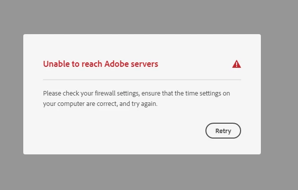 Creative Cloud Unable ro reach Adobe Servers Error Message