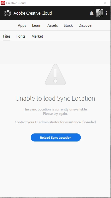 Creative Cloud "Unable to load Sync Location" on Windows 10