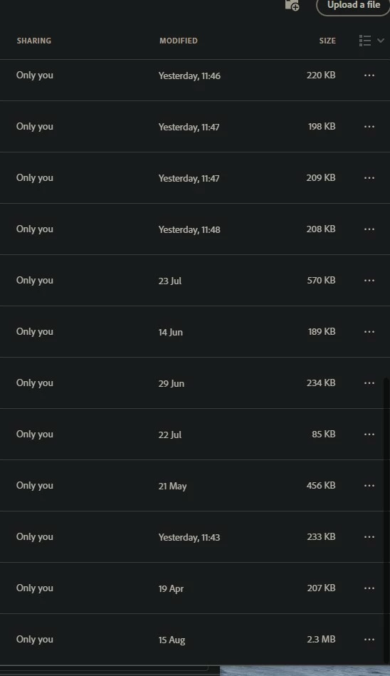 I have a few items in 'Your libraries' from using the Adobe Capture app on my phone, plus 2 small images in 'Your files'. I doubt if they add up to 100MB in total.