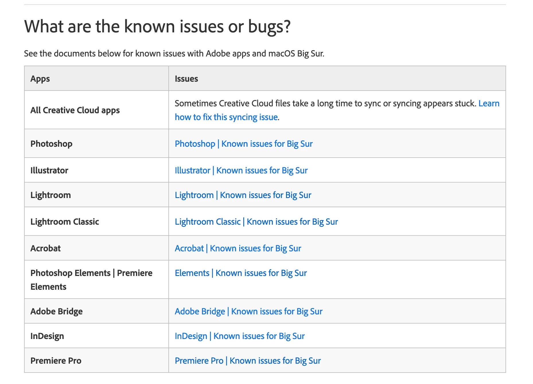 Every program except the 'Lightrooms' on this list I use...and it has been a year since OS Big Sur was released. The page even states, right above this table, "We strongly recommend you wait until we have released a compatible version of your app." No kidding!
