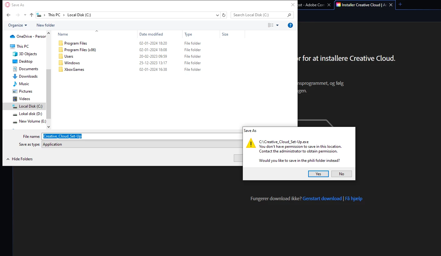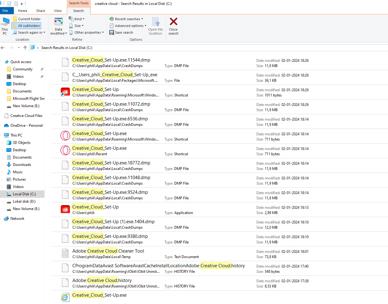 Hey community, i did something stupid today. I got a new E drive and since adobe only works on C and i had no space there i moved every file to my new E drive and deleted everything in my C drive. Everything is fine except it wont let me install creative something with missing files etc. I've used a 3 party plugin to delete all files for adobe and deleted as many as windows will give me permission to but i still cant dont know what to do. Even if i get the creative installer down every time i click the icon nothing happens. (And yes i've used adobe creative cloud cleaner but it still wont work)