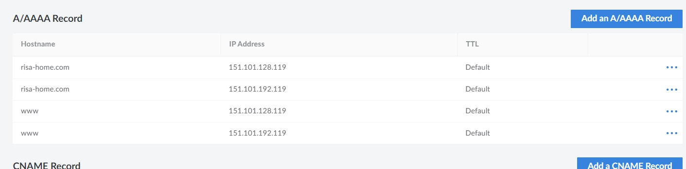 I have checked in thee DNS console of my domain, and there seems to be no AAAA records there, just the 4 A records that I have defined. Screenshot:
