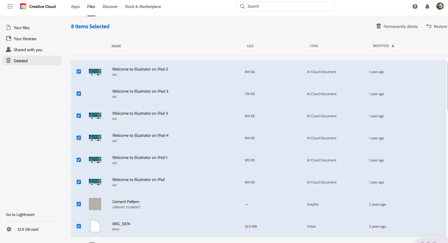 Delete all files in trash - Creative cloud