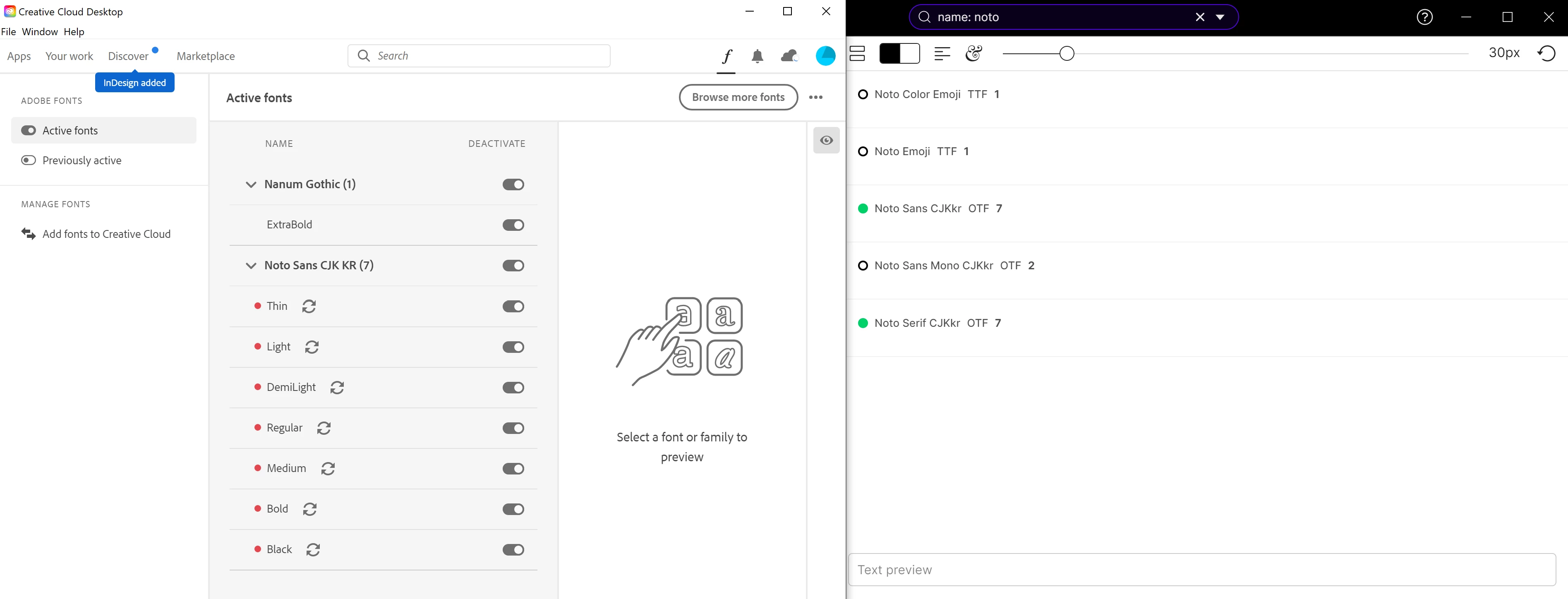 I have several font managers and font licensing software on my computer. Some of these fonts are also served by Adobe Fonts service, but I primarily have them activated on my computer via my other font manager applications and licensing software. However, Adobe CC constantly tries to activate the same fonts using their own service, which eventually results in a bunch of failed activations and messed up fonts list on Adobe and other apps. If Adobe CC is incapable of, or unwilling to detect fonts activated by other third party software, at least Adobe should offer a global option to disable automatic font detection on all their applications. To speak my honest impression of this 'feature', this looks like Adobe's version of the AARD code to force users to rely on their font service, and it makes me very, very uncomfortable to keep using Adobe's software at all.