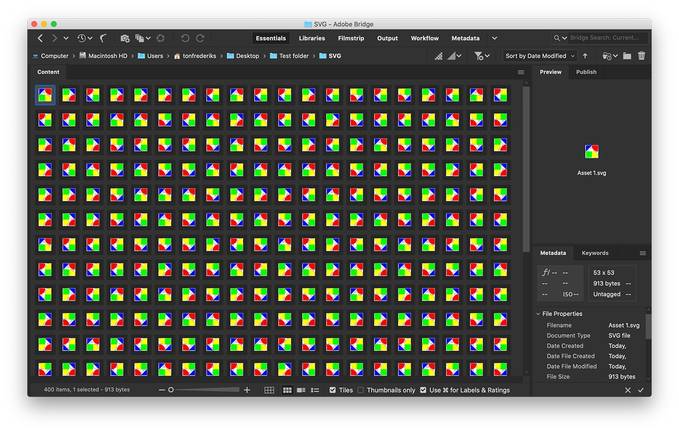Is there an option to view hundreds of SVG files through one preview mode using an Adobe product?