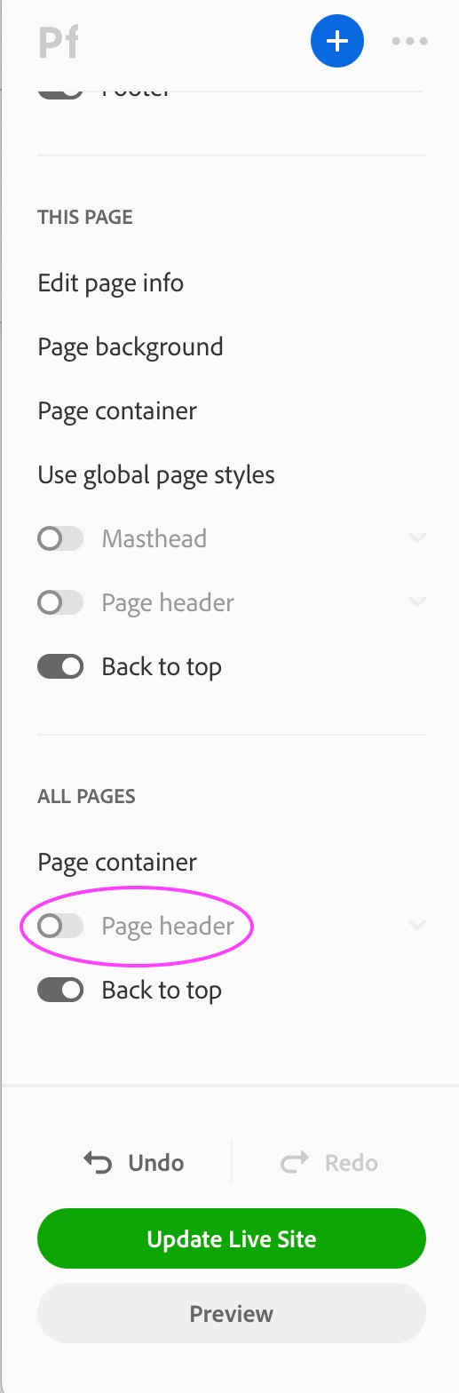 Erasing the page title on adobe portfolio