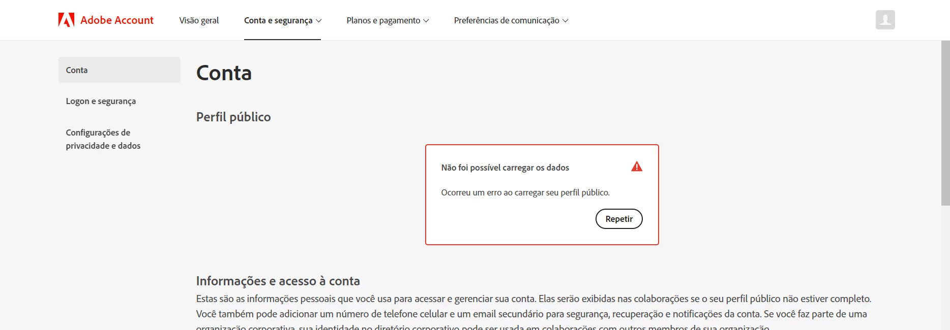 Não consigo visualizar meu plano tambem, no próprio site do Adobe.