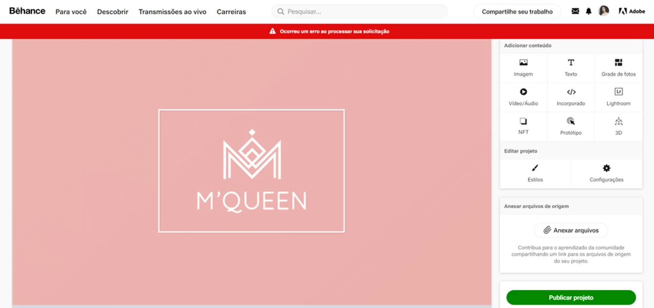 Erro ao processar publicação de projetos no Behance