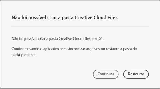 Estou tentando mudar a pasta em que meus arquivos ficam sincronizados, porém está dando este erro que não cria a pasta, alguém consegue me ajudar?