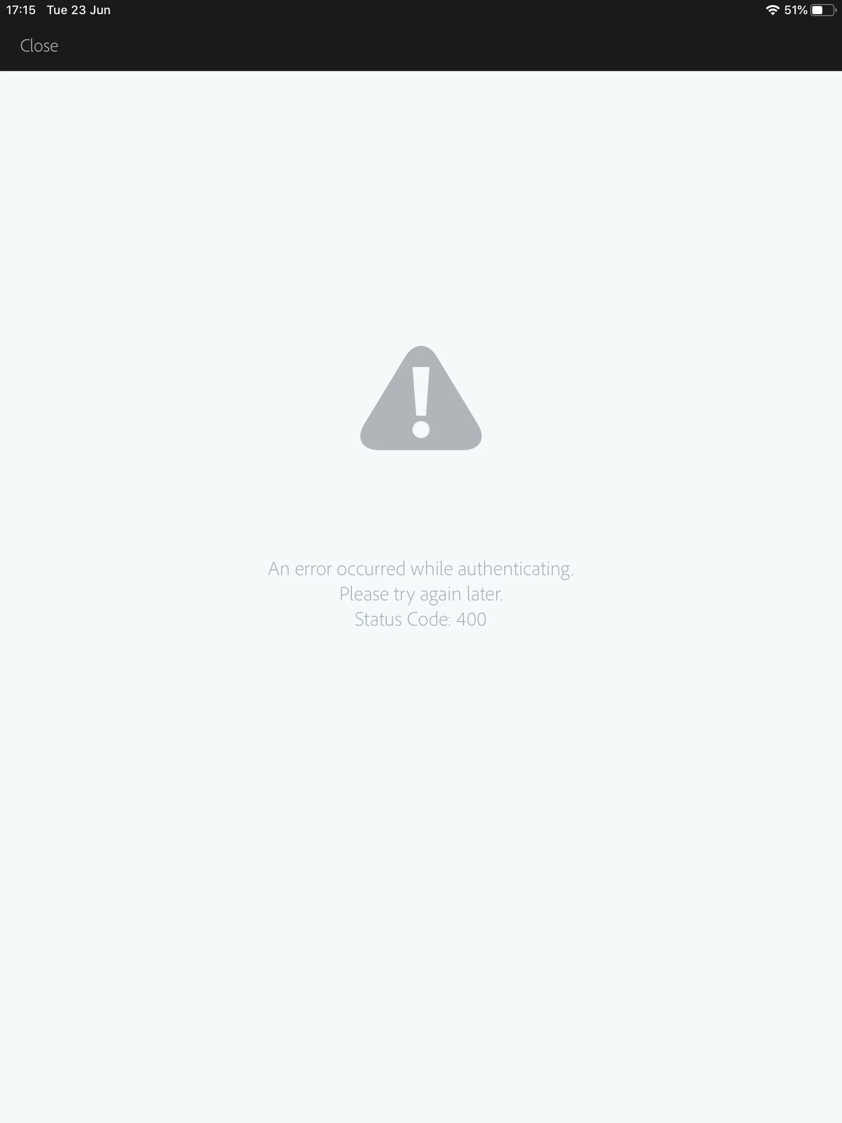 Error 400 when I sign in with student account on iPad (photoshop app and creative cloud app)