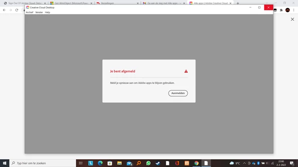 Ik get this error when i open Adobe Creative Cloud. I tried reïnstall it but didnt work. it says something like: 'You are logged out'. And 'Log in to use your Adobe products'. If i press 'Aanmelden', (means login), nothing happens, after loading i see the same screen