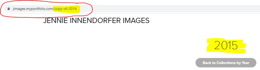 You can see that this particular collection is named 2015, but in the web search bar it shows "copy of 2014" from which I copied the new collection, renamed it, and gave its own original content.