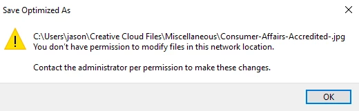 The issue I'm having just began in the last week, where it says I cannot save files when I'm saving to the Creative Cloud Files folder; because... "file is already in use," "you don't have permission to modify files in this network location" or "could not write the file. an assertion has failed."