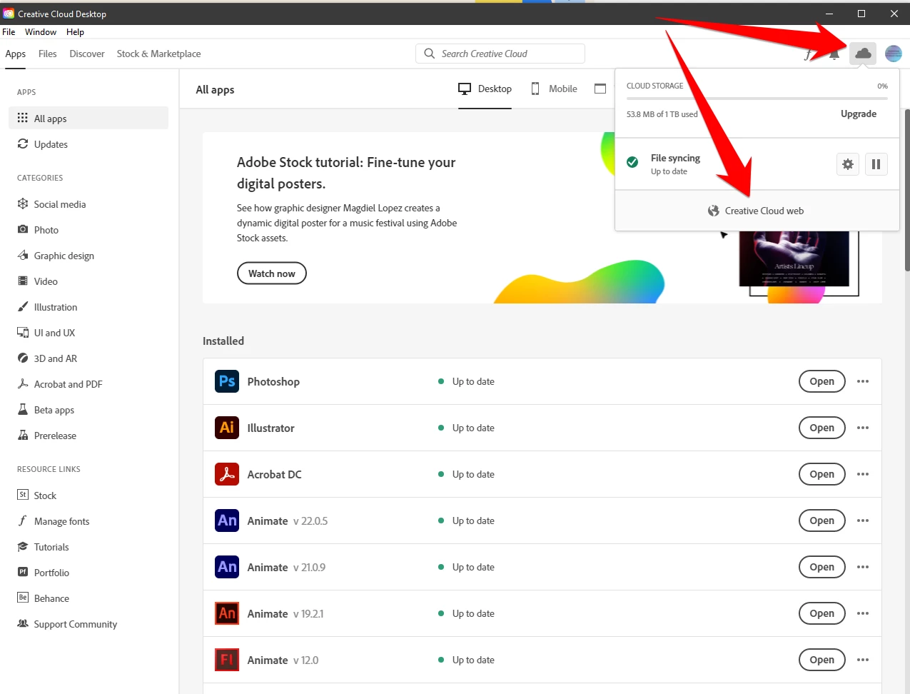 espace de stockage creative cloud