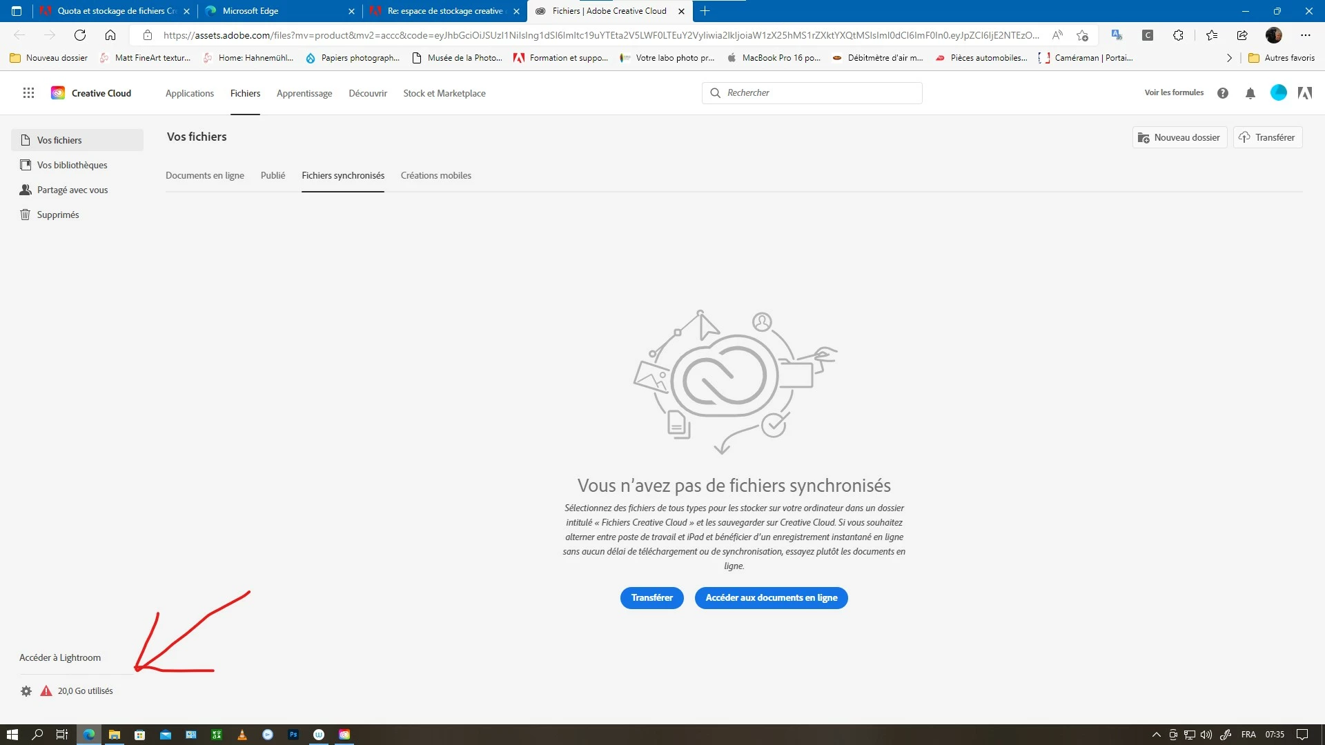 dans ma formule d'abonnement j'ai 20 GO de stockage dans creative cloud.