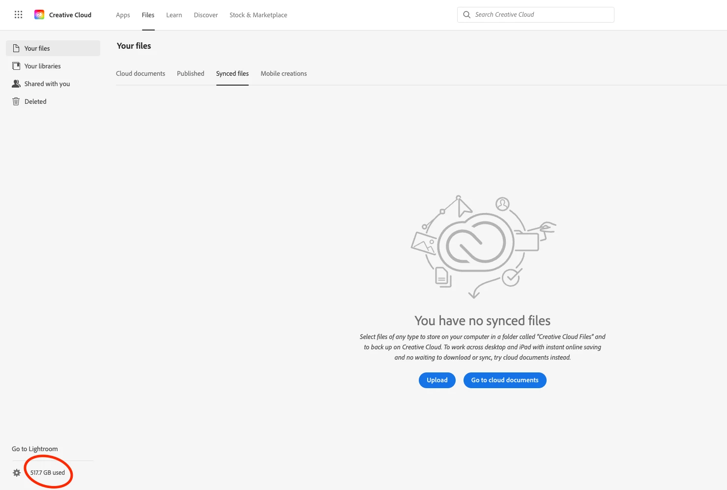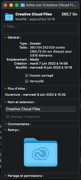 Bonjour, j'ai un stockage de 1 To dans mon plan. l'App CC me dit que le stockage est plein alors que mon dossier synchro n'est que de 360 Go.