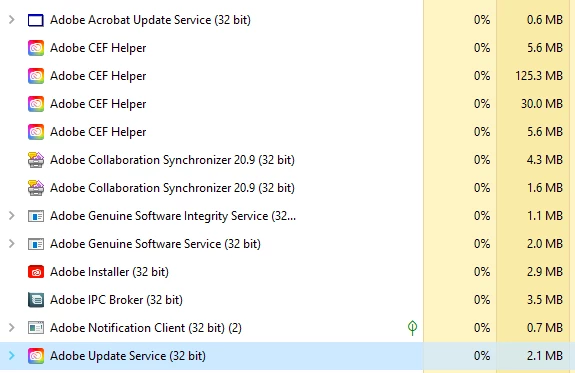 Excessive background apps running for Creative Cloud [Windows 10]